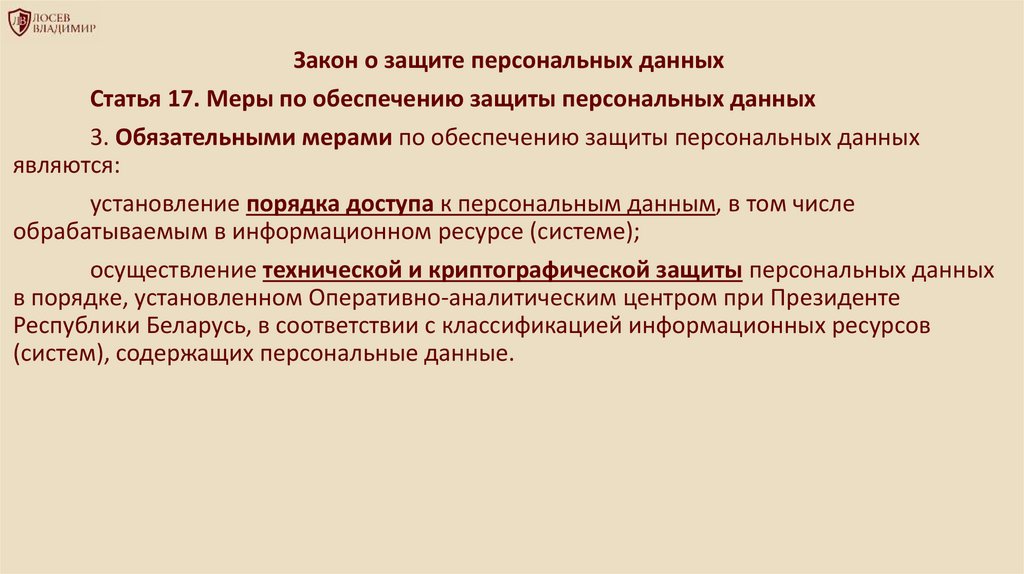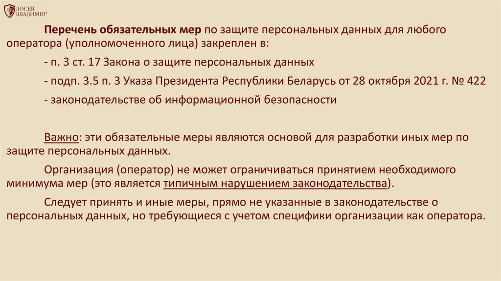 требованиями Закона Республики Беларусь «О защите персональных данных» (2021)