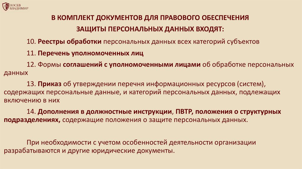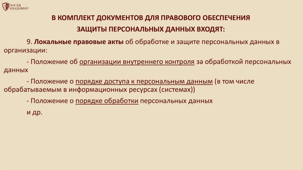 9. Локальные правовые акты об обработке и защите персональных данных в