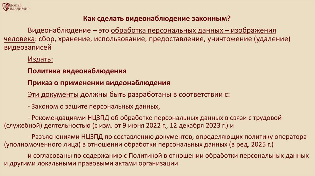 Как сделать видеонаблюдение законным?Видеонаблюдение – это обработка персональных данных – изображения