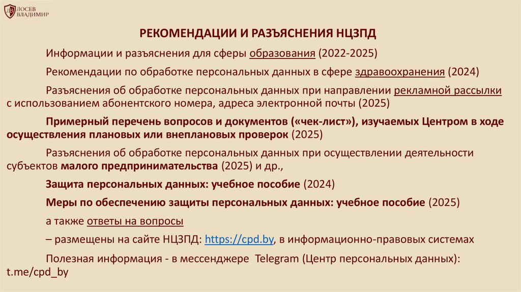 РЕКОМЕНДАЦИИ И РАЗЪЯСНЕНИЯ НЦЗПДИнформации и разъяснения для сферы образования (2022-2025)