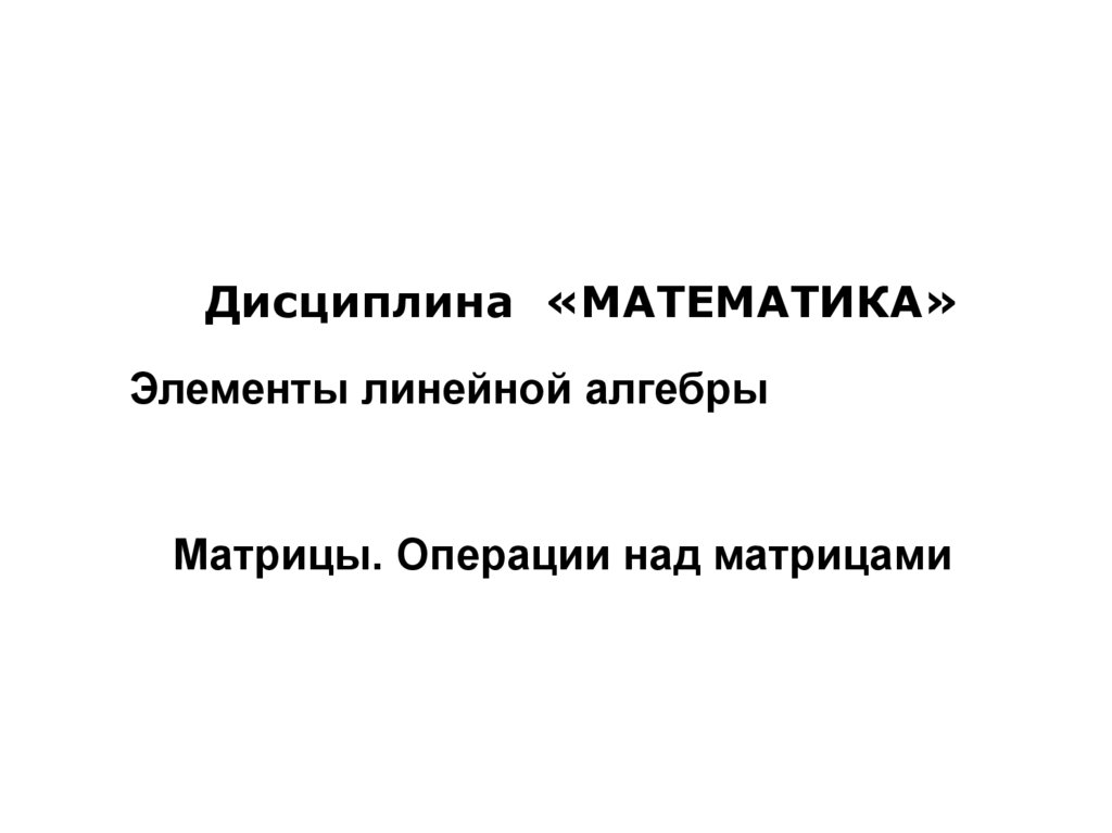 Дисциплина «МАТЕМАТИКА»Элементы линейной алгебры