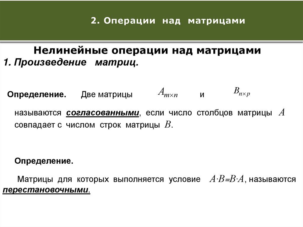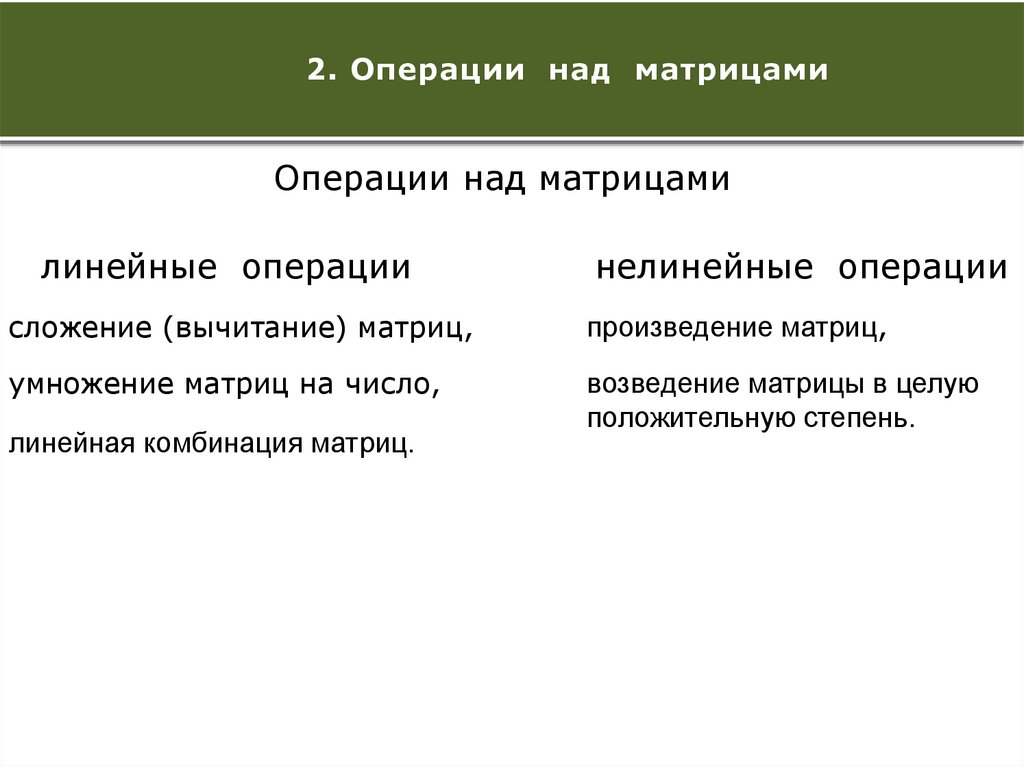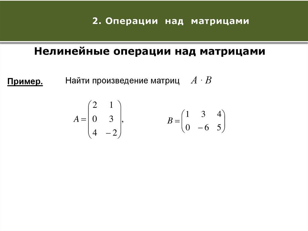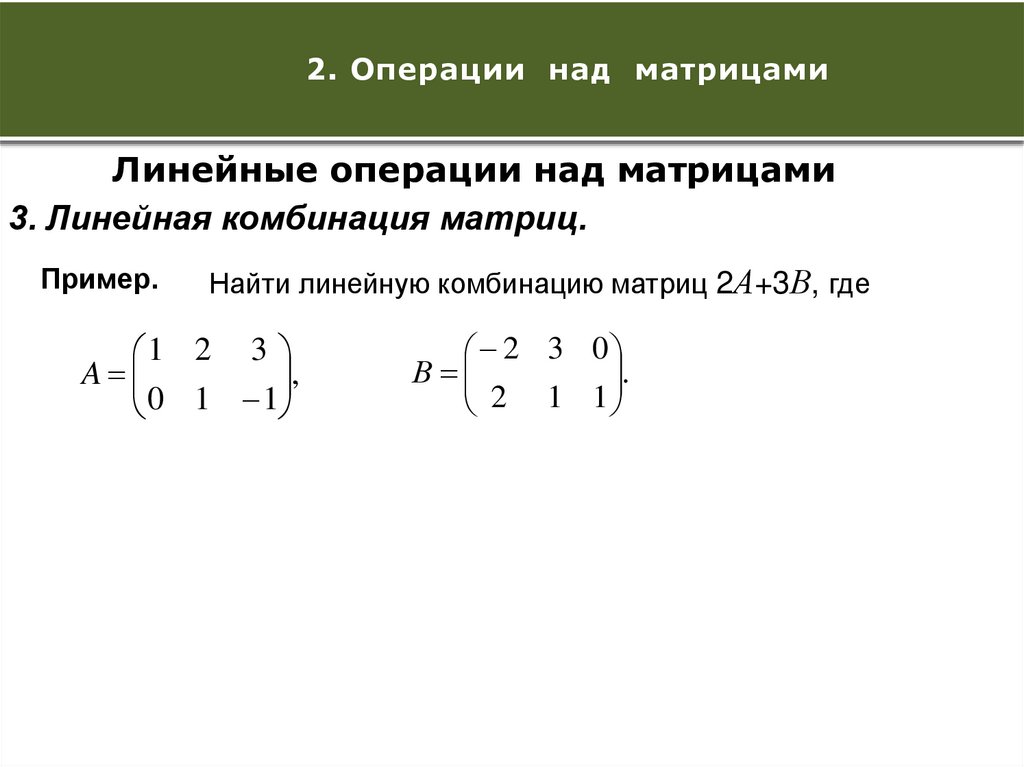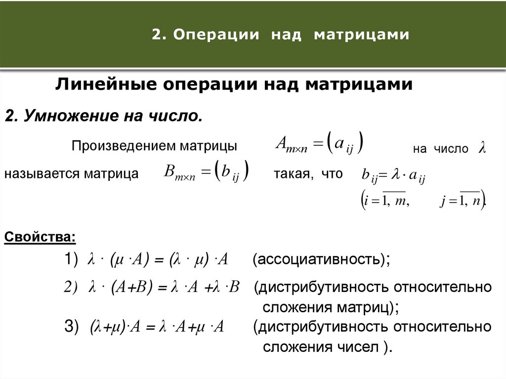 1. Линейные операции над матрицами: умножение матрицы на число и