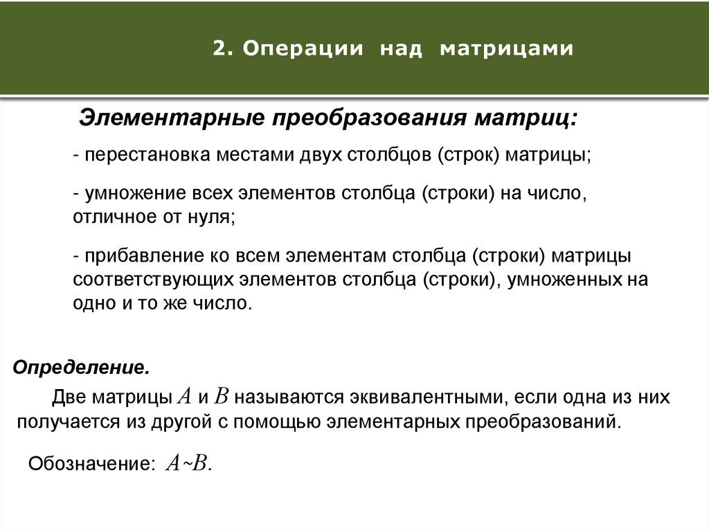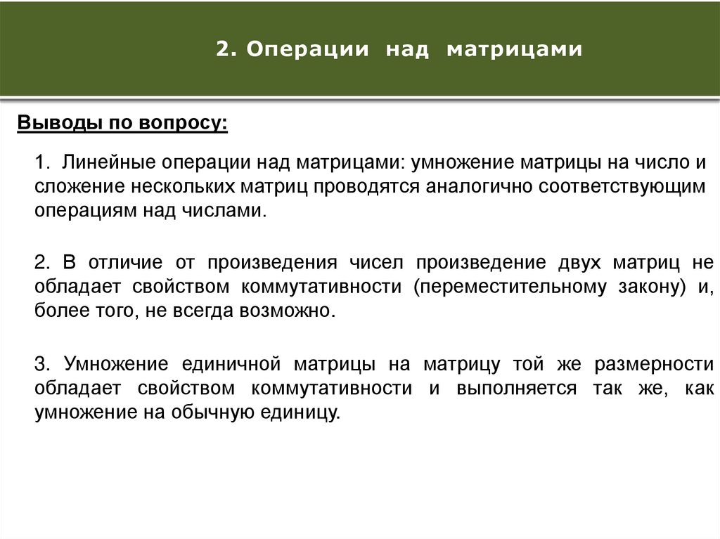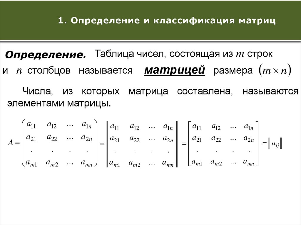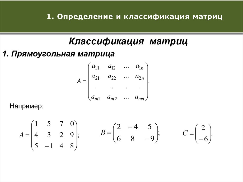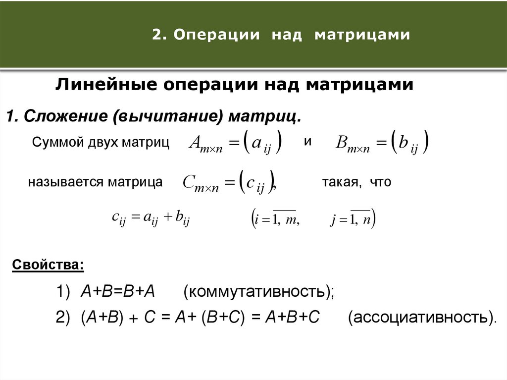 1. Линейные операции над матрицами: умножение матрицы на число и