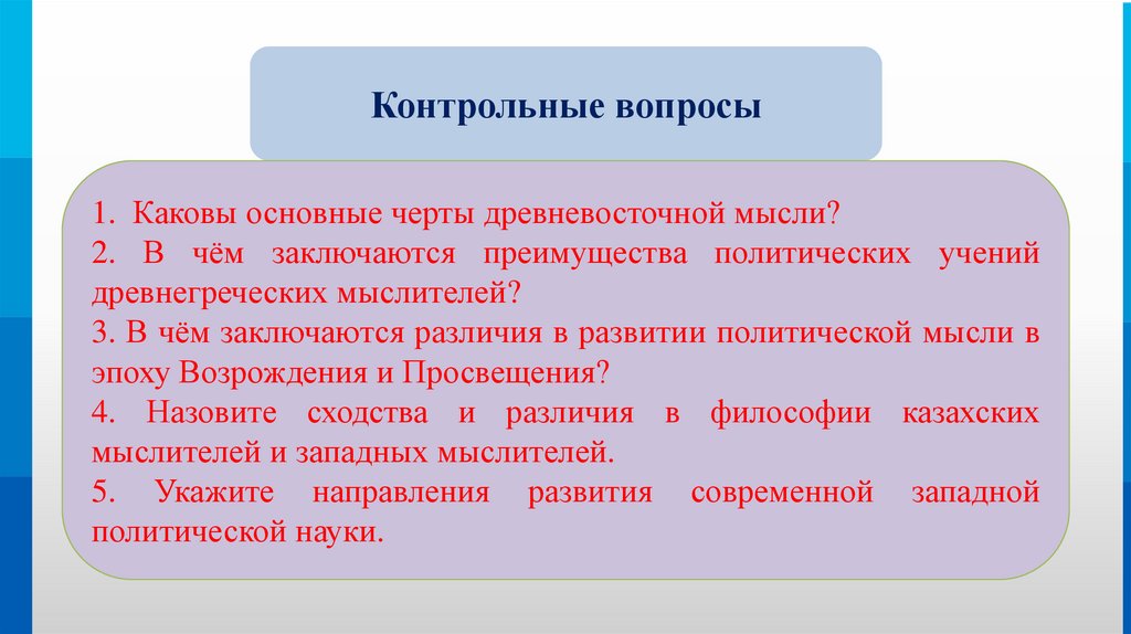 Контрольные вопросы1. Каковы основные черты древневосточной мысли?