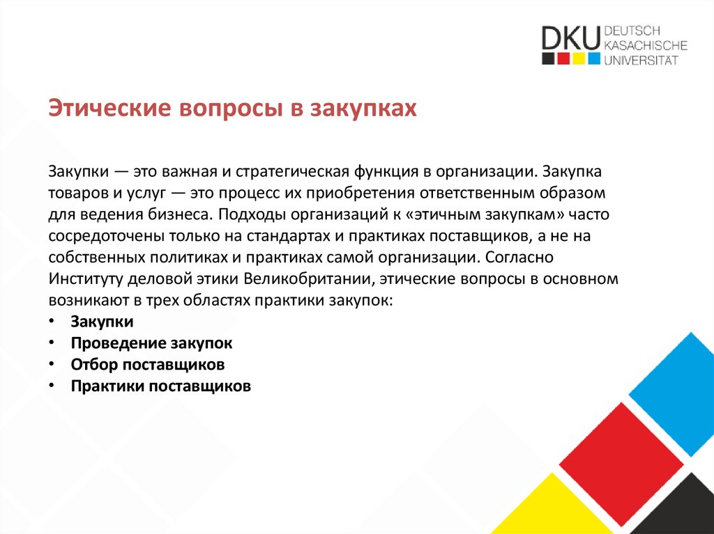 Этические вопросы в закупкахЗакупки — это важная и стратегическая функция в организации. Закупка