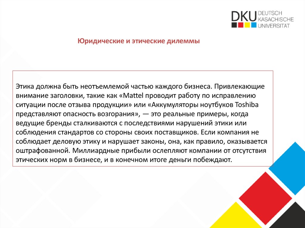 Юридические и этические дилеммыЭтика должна быть неотъемлемой частью каждого бизнеса. Привлекающие