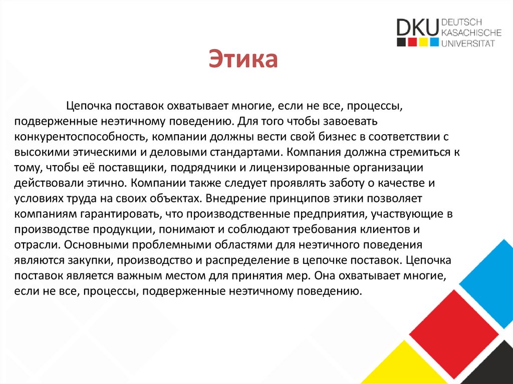 ЭтикаЦепочка поставок охватывает многие, если не все, процессы,