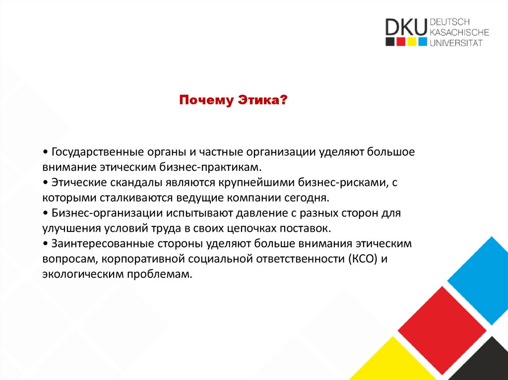 Почему Этика?• Государственные органы и частные организации уделяют большое