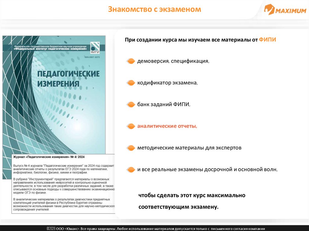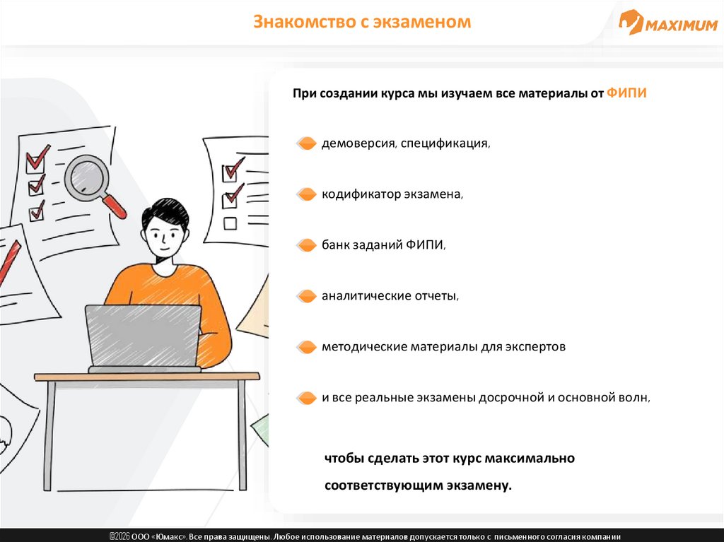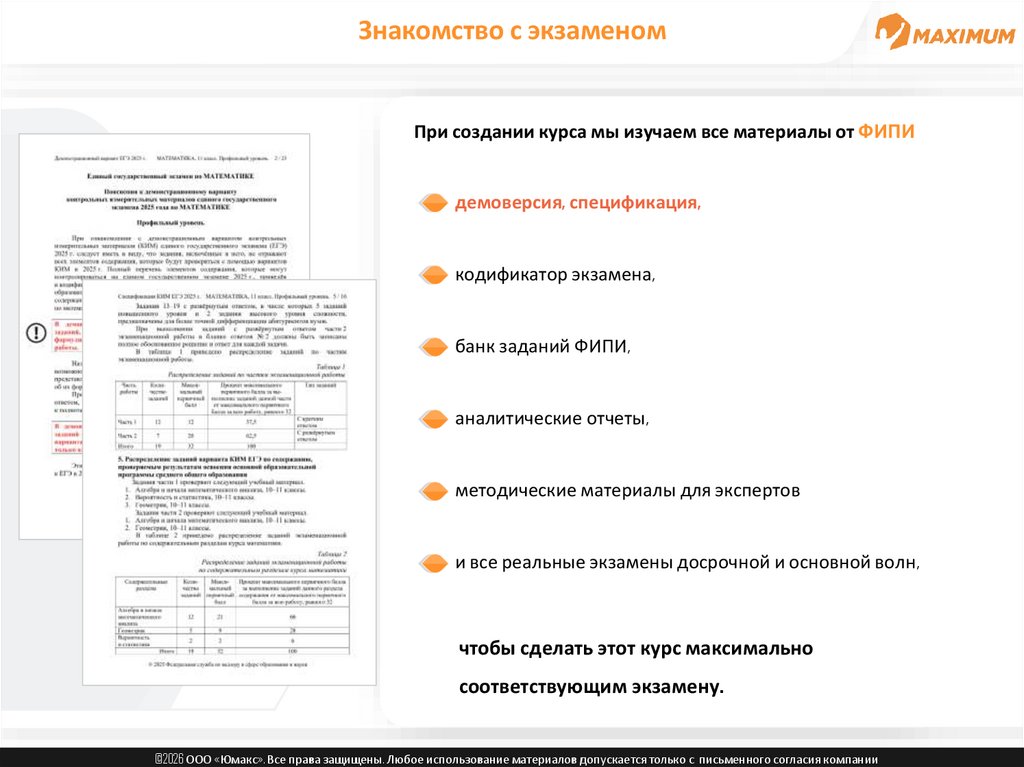 Знакомство с экзаменомПри создании курса мы изучаем все материалы от ФИПИ