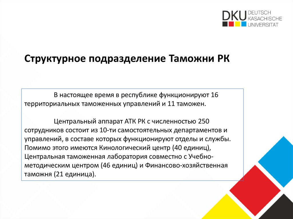 Структурное подразделение Таможни РКВ настоящее время в республике функционируют 16