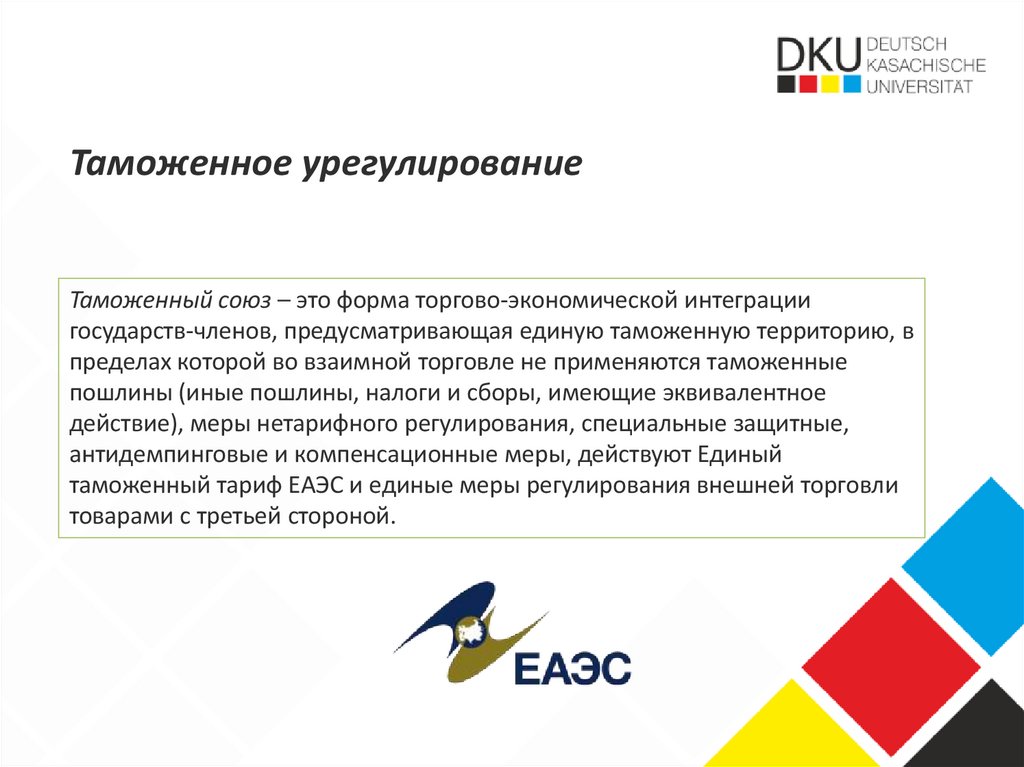 Таможенное урегулированиеТаможенный союз – это форма торгово-экономической интеграции