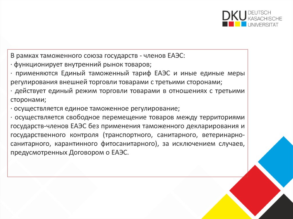 В рамках таможенного союза государств - членов ЕАЭС:· функционирует внутренний рынок товаров;