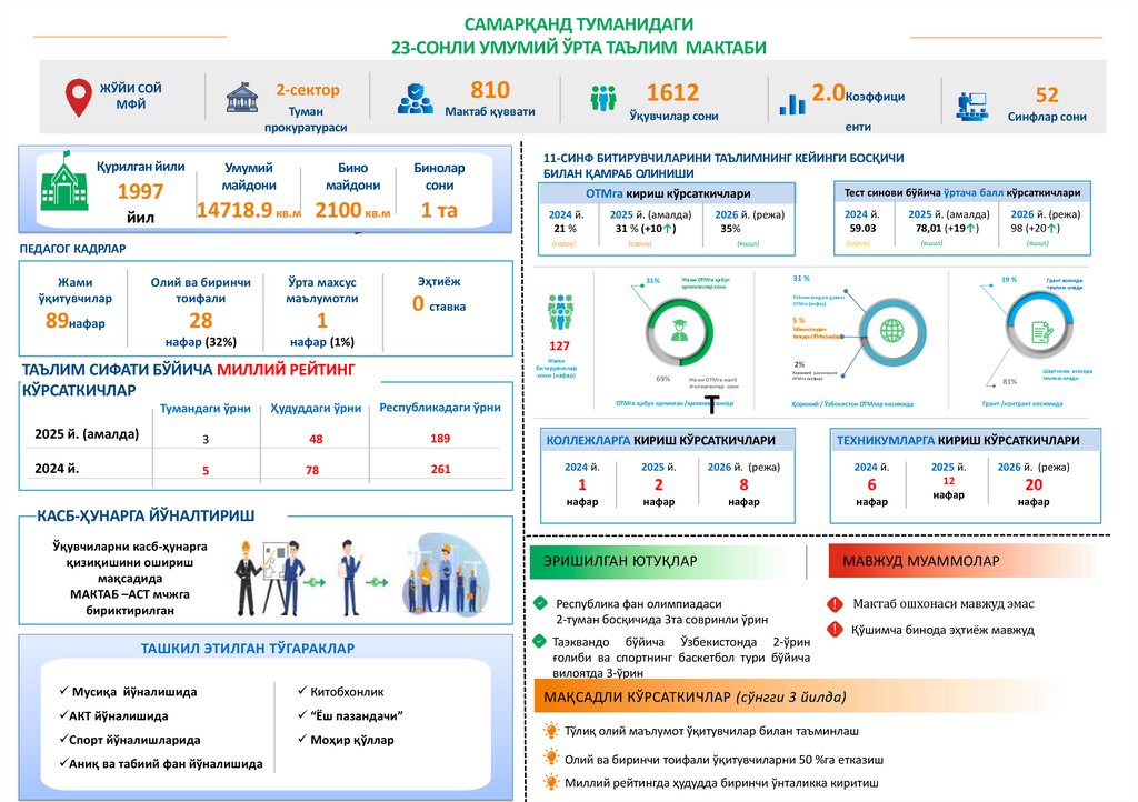 САМАРҚАНД ТУМАНИДАГИ23-СОНЛИ УМУМИЙ ЎРТА ТАЪЛИМ МАКТАБИ