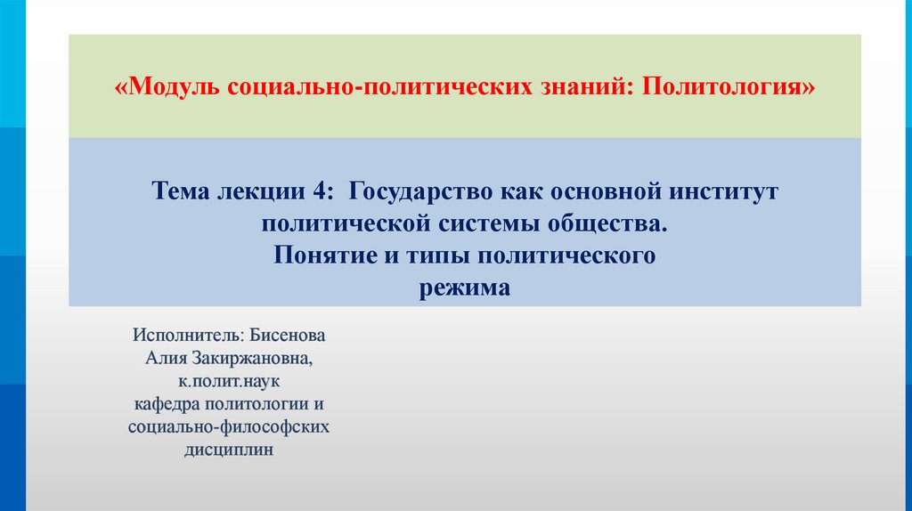 Тема лекции 4: Государство как основной институтполитической системы общества.