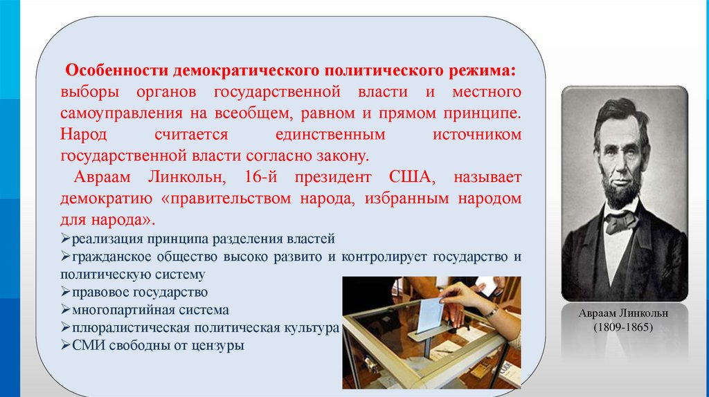 Особенности демократического политического режима:выборы органов государственной власти и местного