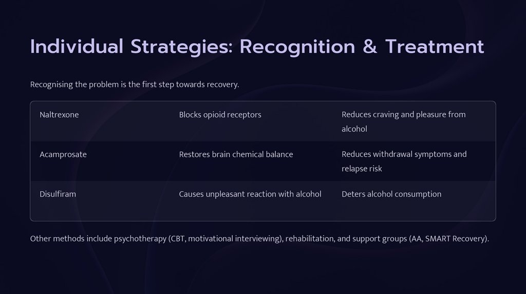 Individual Strategies: Recognition & TreatmentRecognising the problem is the first step towards recovery.