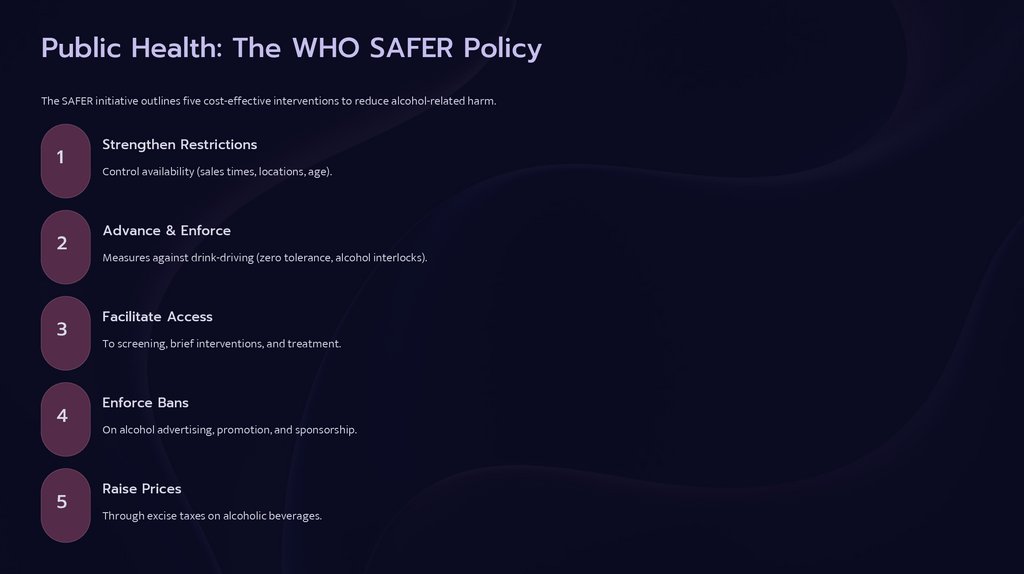 Public Health: The WHO SAFER PolicyThe SAFER initiative outlines five cost-effective interventions to reduce alcohol-related harm.