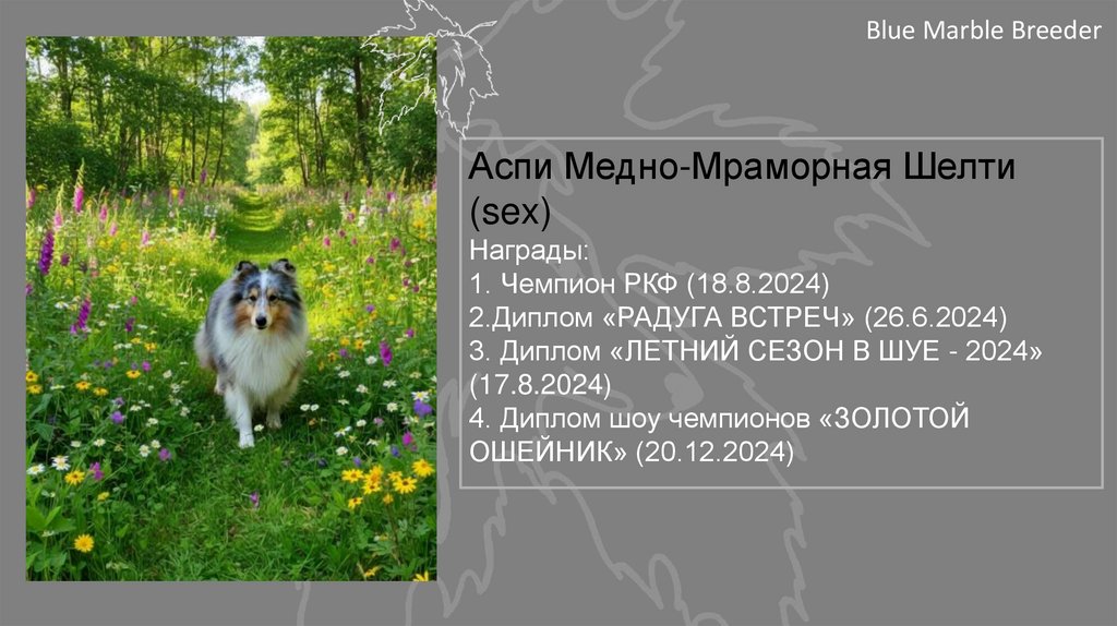 Blue Marble BreederАспи Медно-Мраморная Шелти