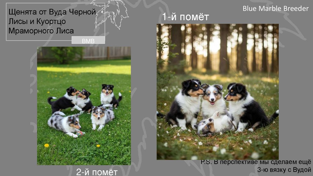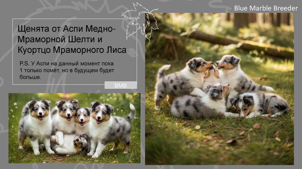 Blue Marble BreederЩенята от Аспи МедноМраморной Шелти и