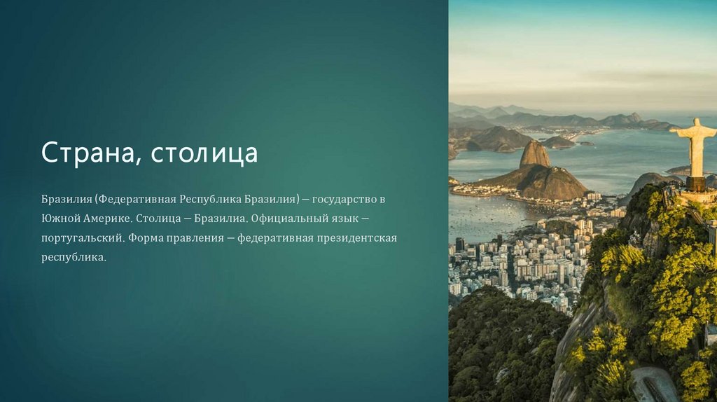 Страна, стол ицаБразилия (Федеративная Республика Бразилия) — государство в