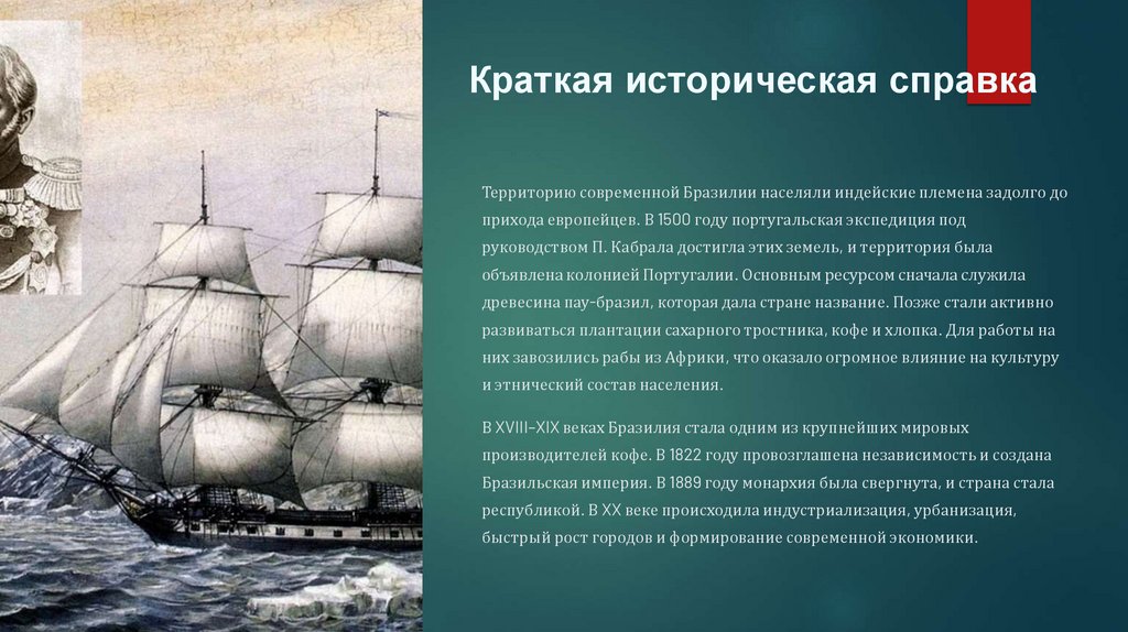 Краткая историческая справкаТерриторию современной Бразилии населяли индейские племена задолго до