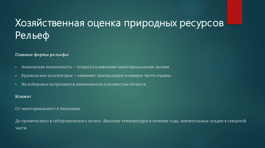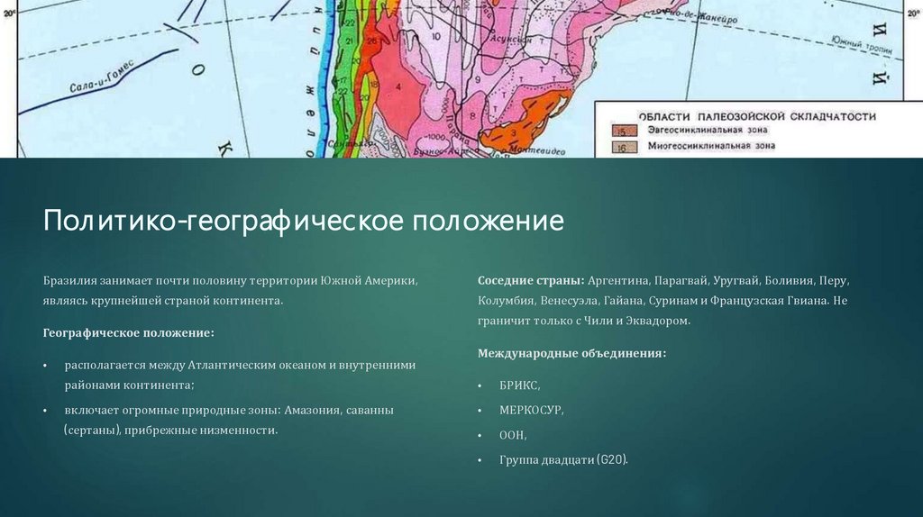Пол итико-географическое положениеБразилия занимает почти половину территории Южной Америки,