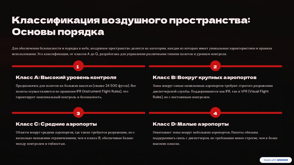 использования. Эта классификация, от классов A до G, разработана для управления различными типами полетов и уровнем контроля.
