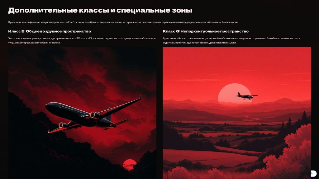 Дополнительные классы и специальные зоныПродолжая классификацию, мы рассмотрим классы E и G, а также перейдем к специальным зонам, которые вводят дополнительные ограничения или предупреждения для обеспечения безопасности.