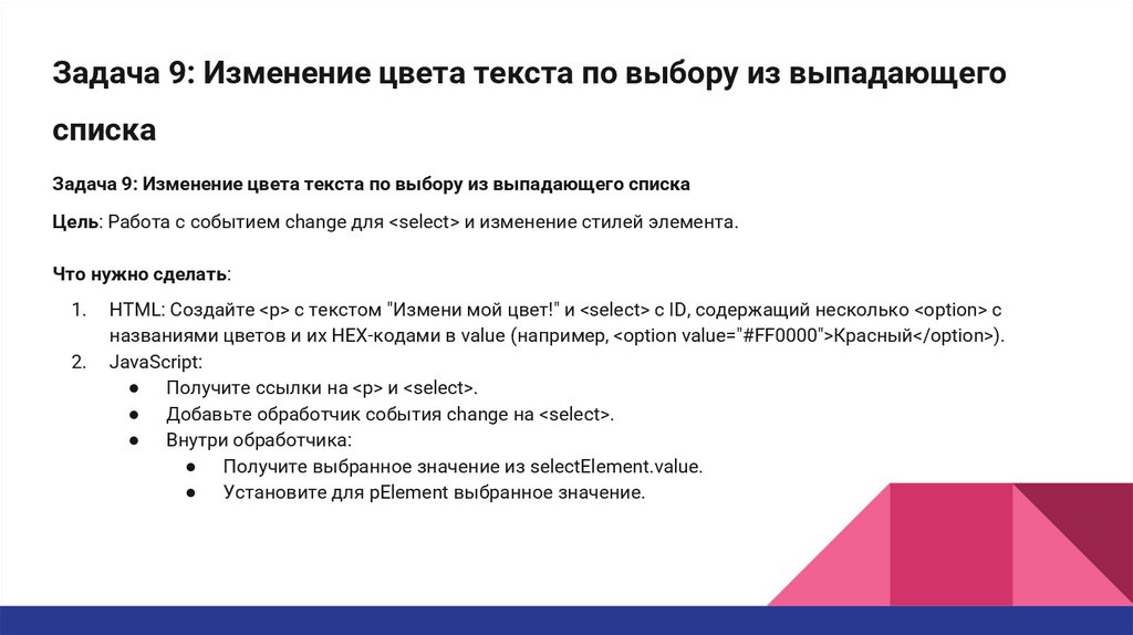 Задача 9: Изменение цвета текста по выбору из выпадающегосписка