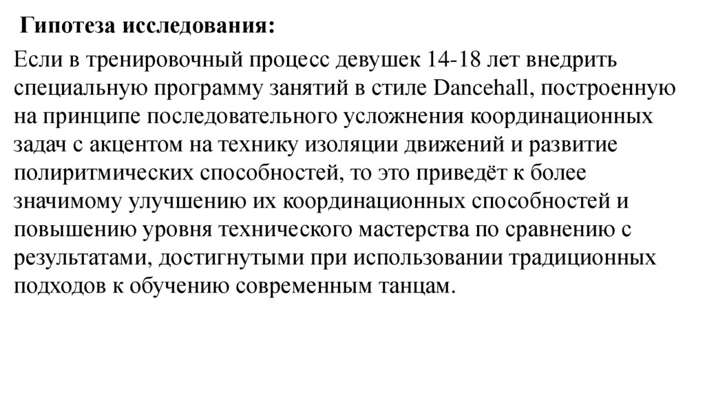 Гипотеза исследования:Если в тренировочный процесс девушек 14-18 лет внедрить