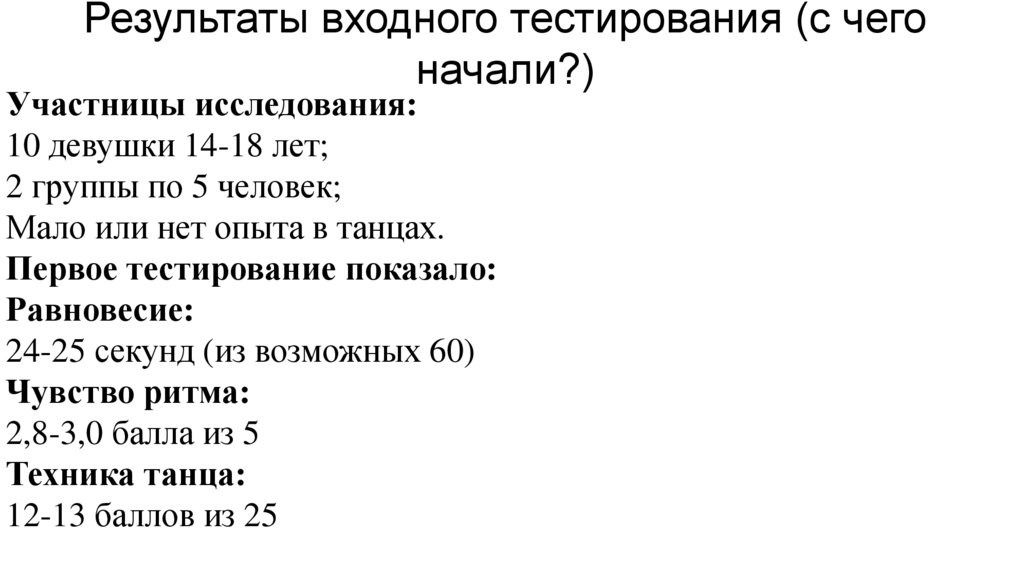 2. Определить исходный уровень подготовки физических качеств и танцевальных качеств