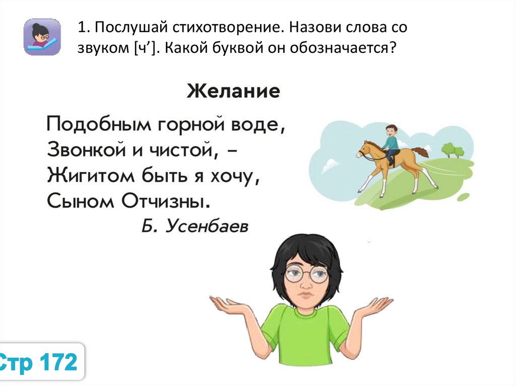 1. Послушай стихотворение. Назови слова созвуком [ч’]. Какой буквой он обозначается?