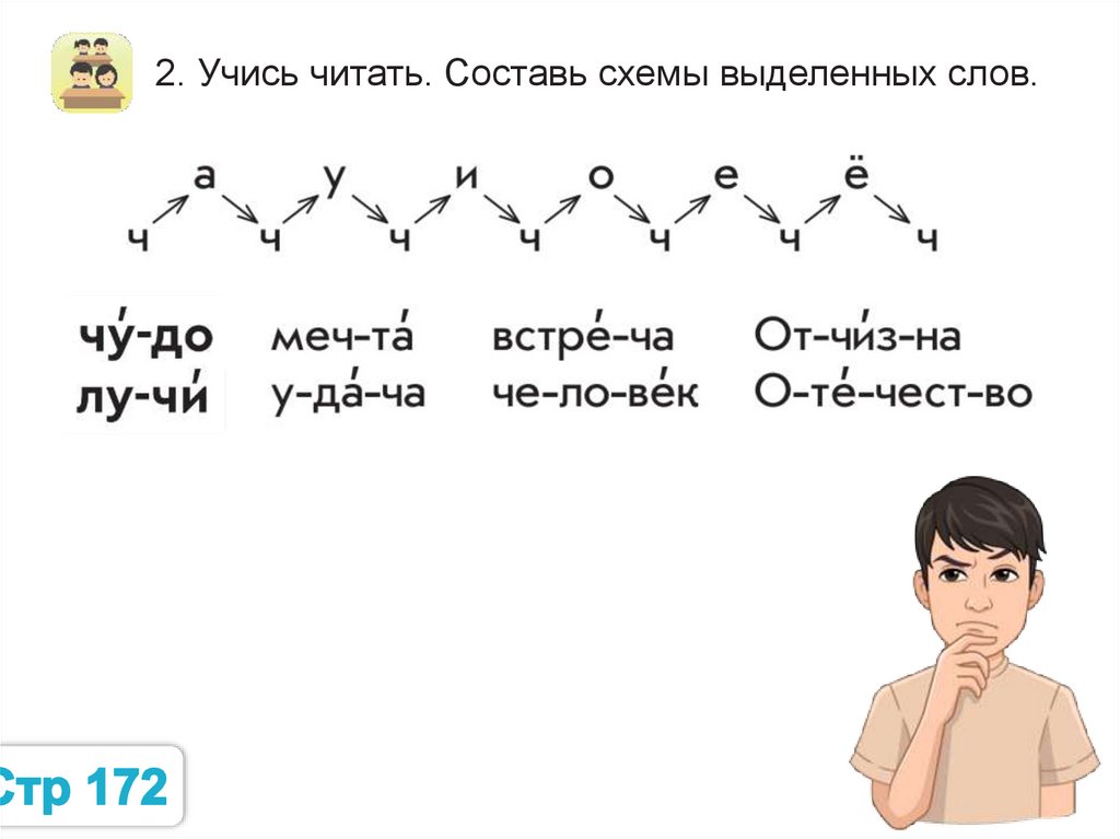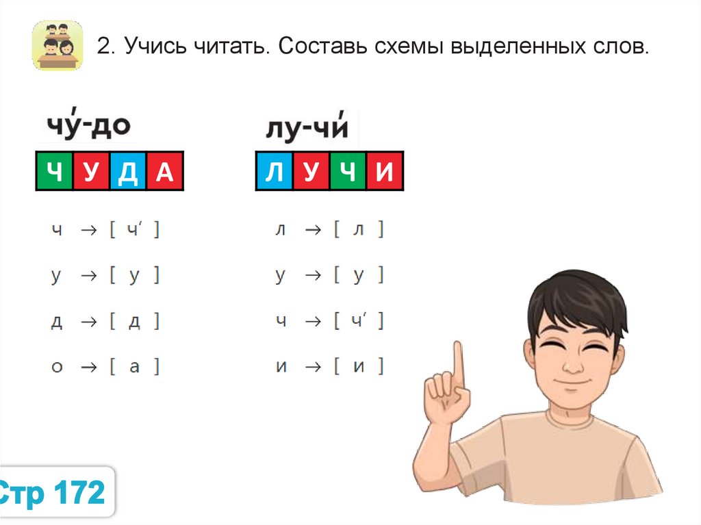 2. Учись читать. Составь схемы выделенных слов.Ч У Д А