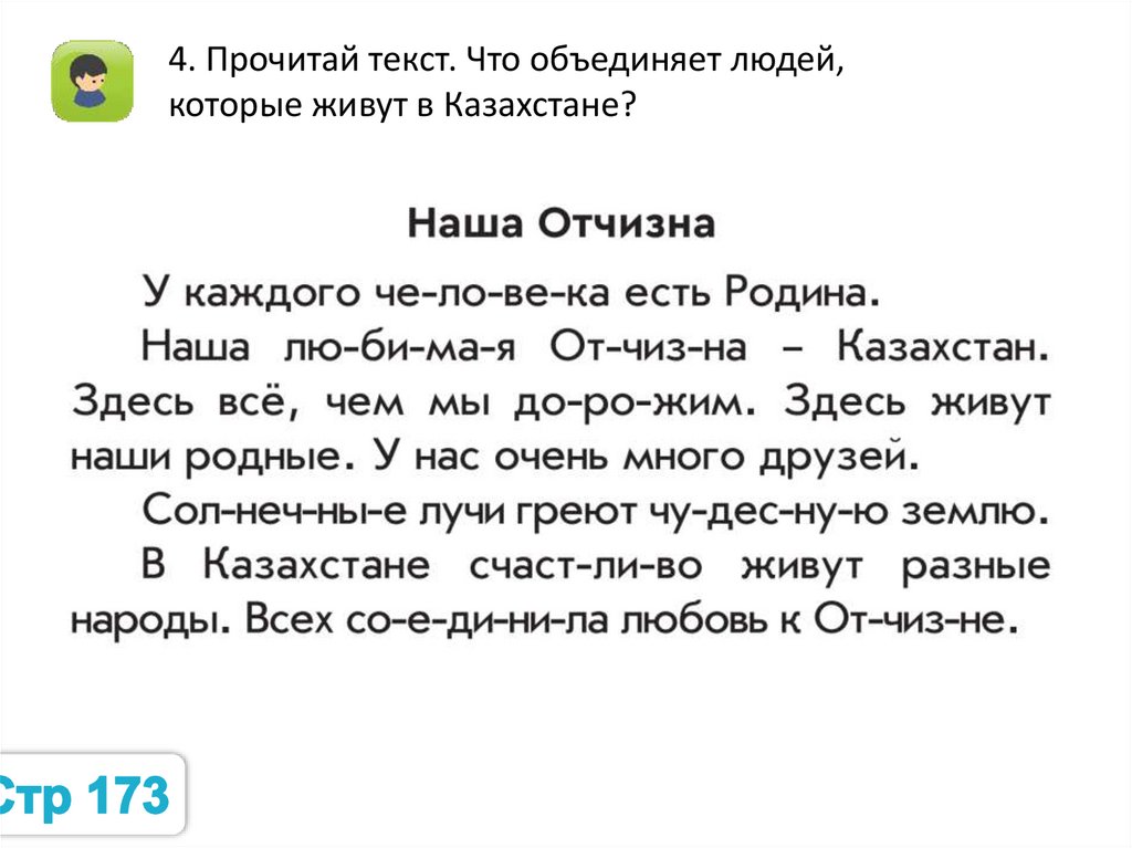 4. Прочитай текст. Что объединяет людей,которые живут в Казахстане?
