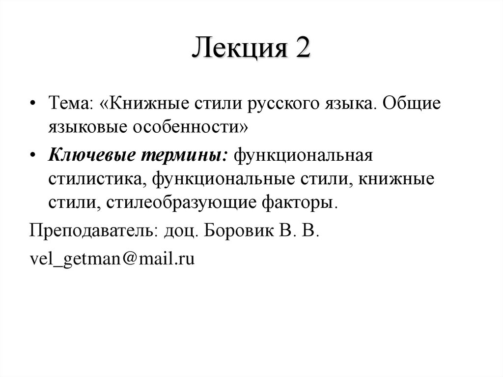 • Тема: «Книжные стили русского языка. Общиеязыковые особенности»