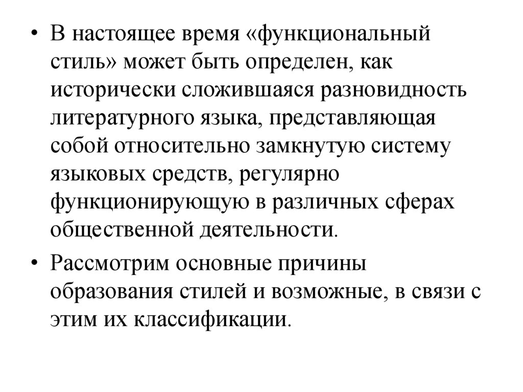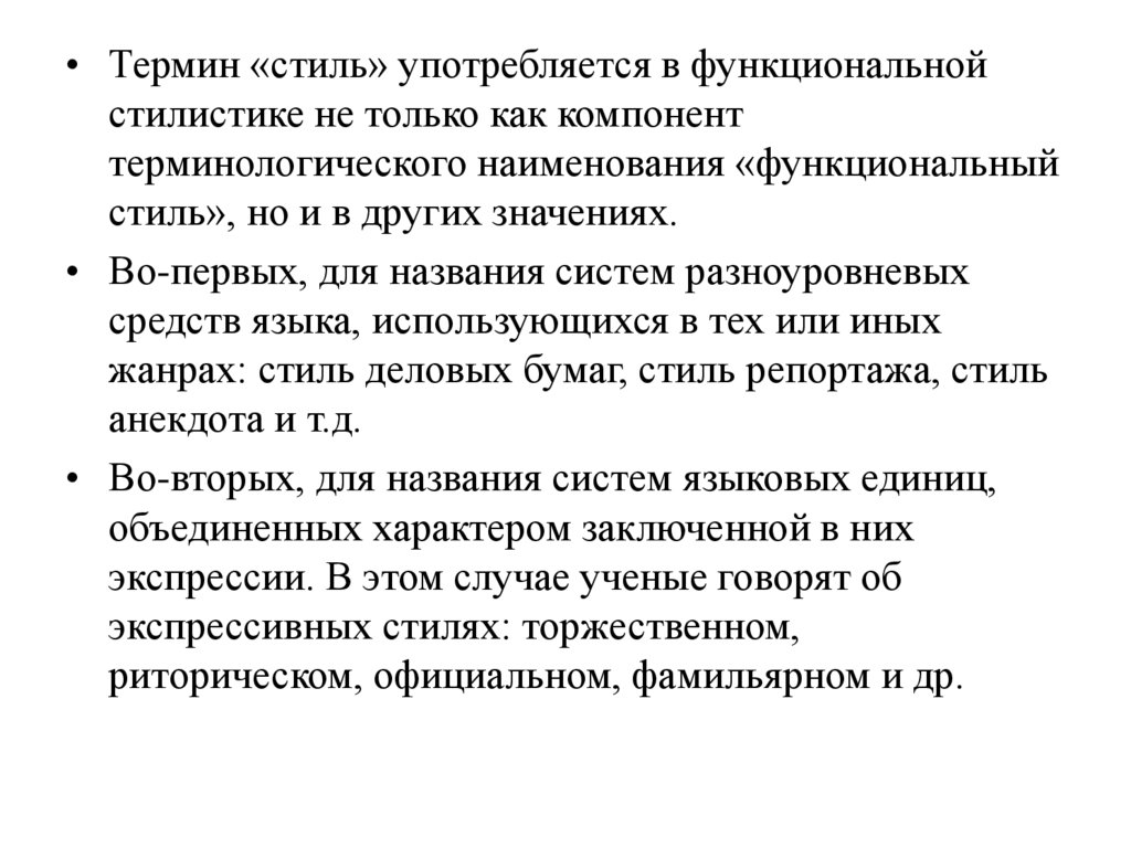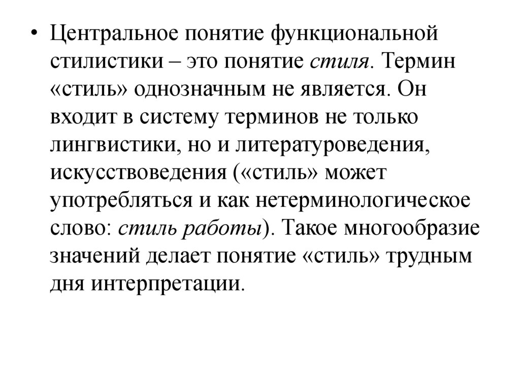• Центральное понятие функциональнойстилистики – это понятие стиля. Термин