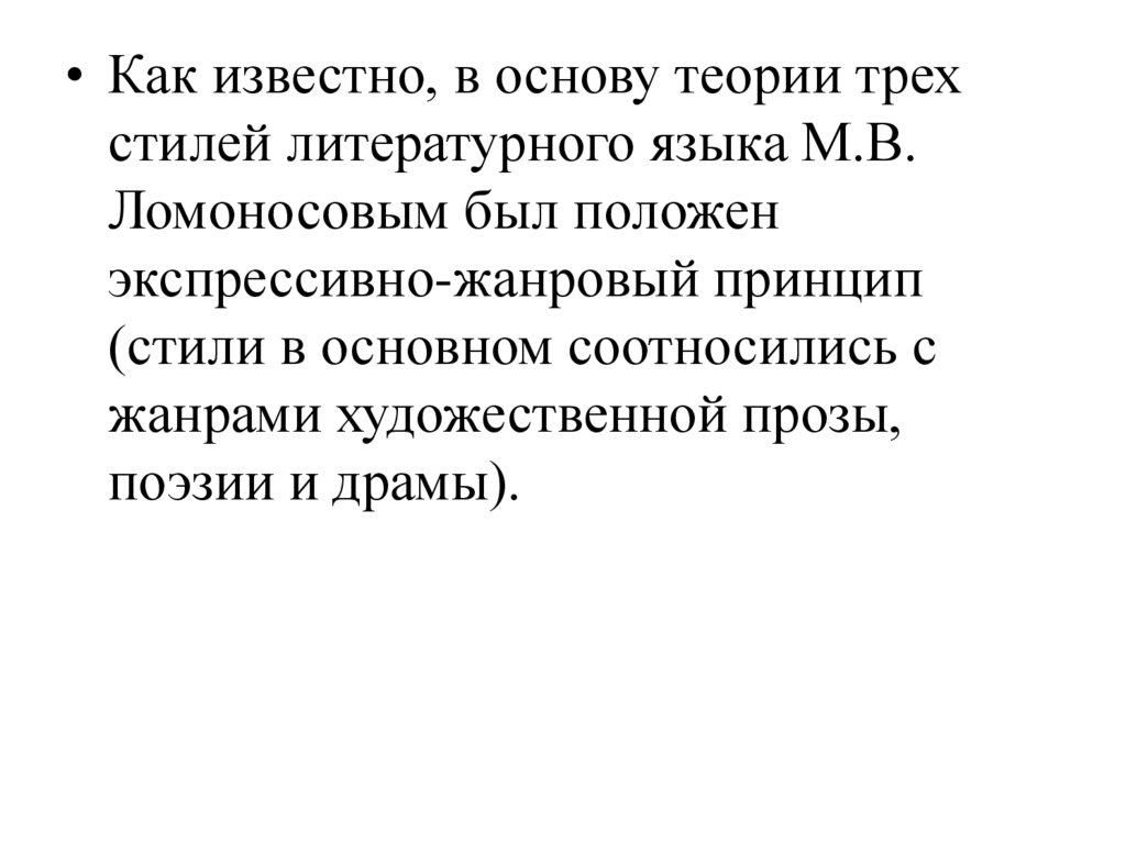 • Как известно, в основу теории трехстилей литературного языка М.В.
