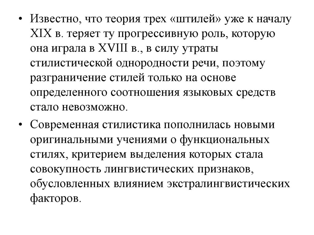 • Известно, что теория трех «штилей» уже к началуXIX в. теряет ту прогрессивную роль, которую