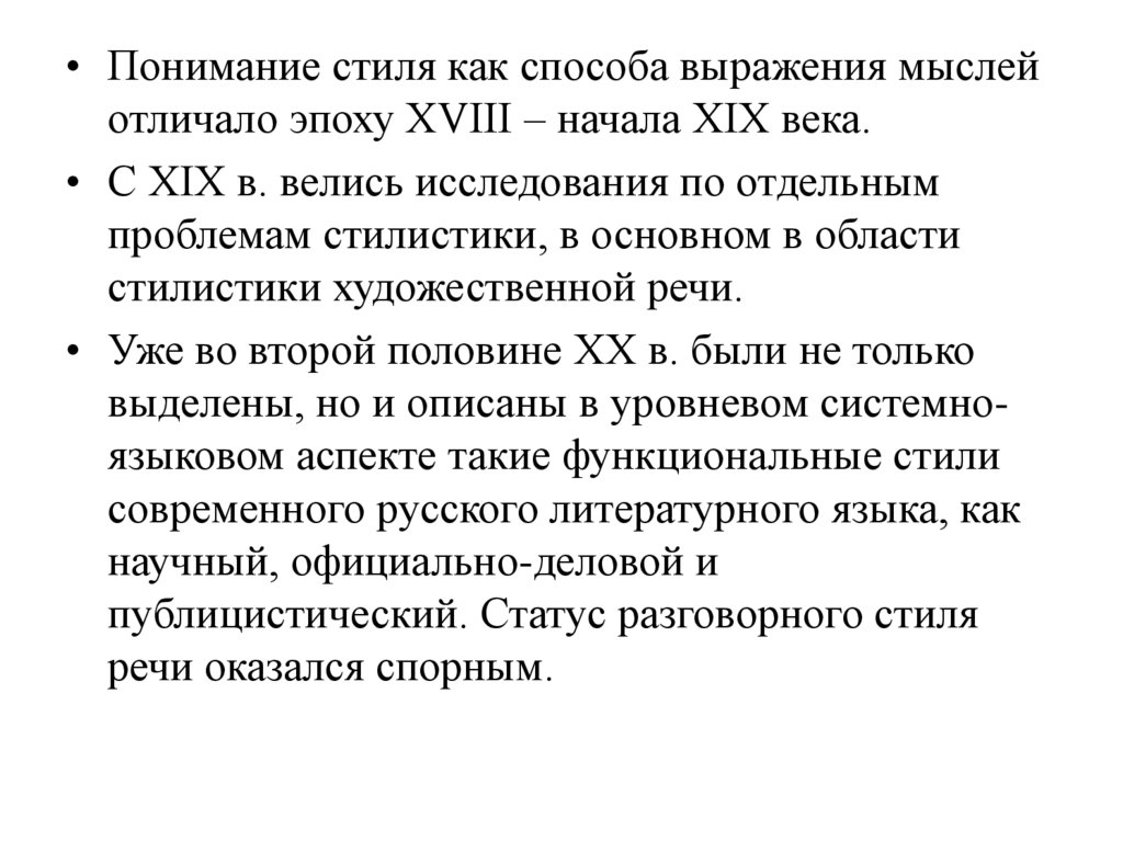 • Понимание стиля как способа выражения мыслейотличало эпоху XVIII – начала XIX века.