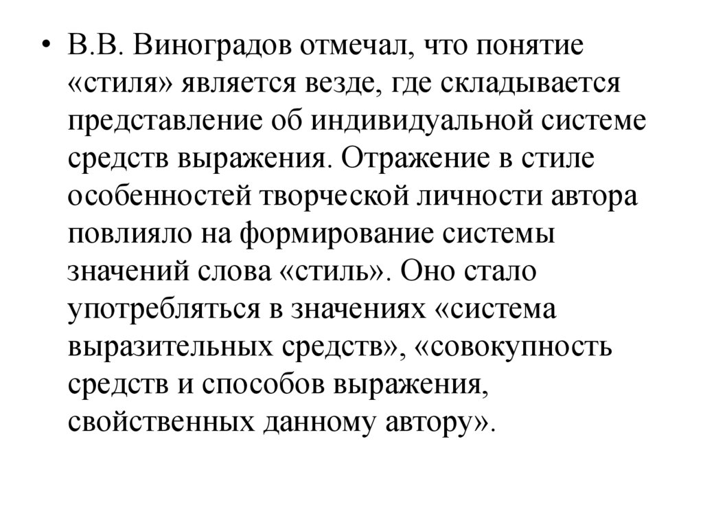 • В.В. Виноградов отмечал, что понятие«стиля» является везде, где складывается
