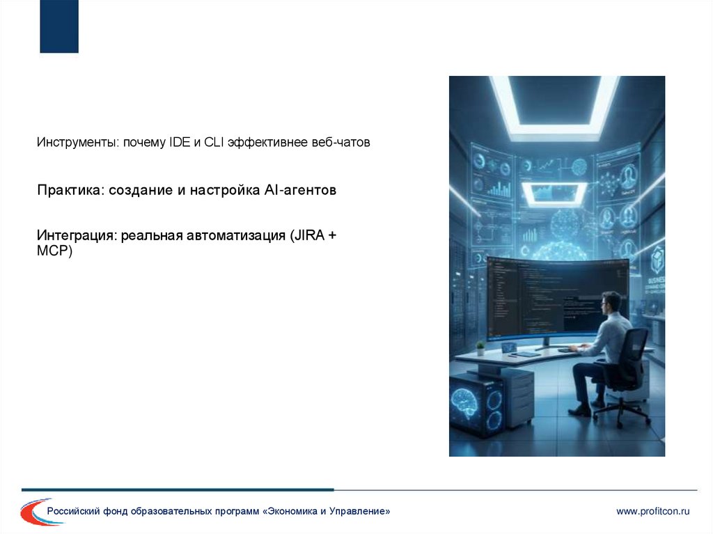 Инструменты: почему IDE и CLI эффективнее веб-чатовПрактика: создание и настройка AI-агентов