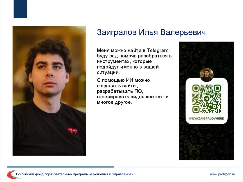 Заигралов Илья ВалерьевичМеня можно найти в Telegram: