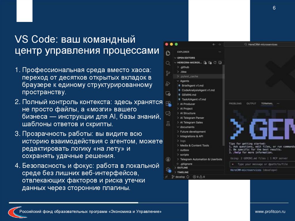 3. Принцип «Одно окно»: вы работаете с документами, почтой и ИИ в одной программе (VS Code),