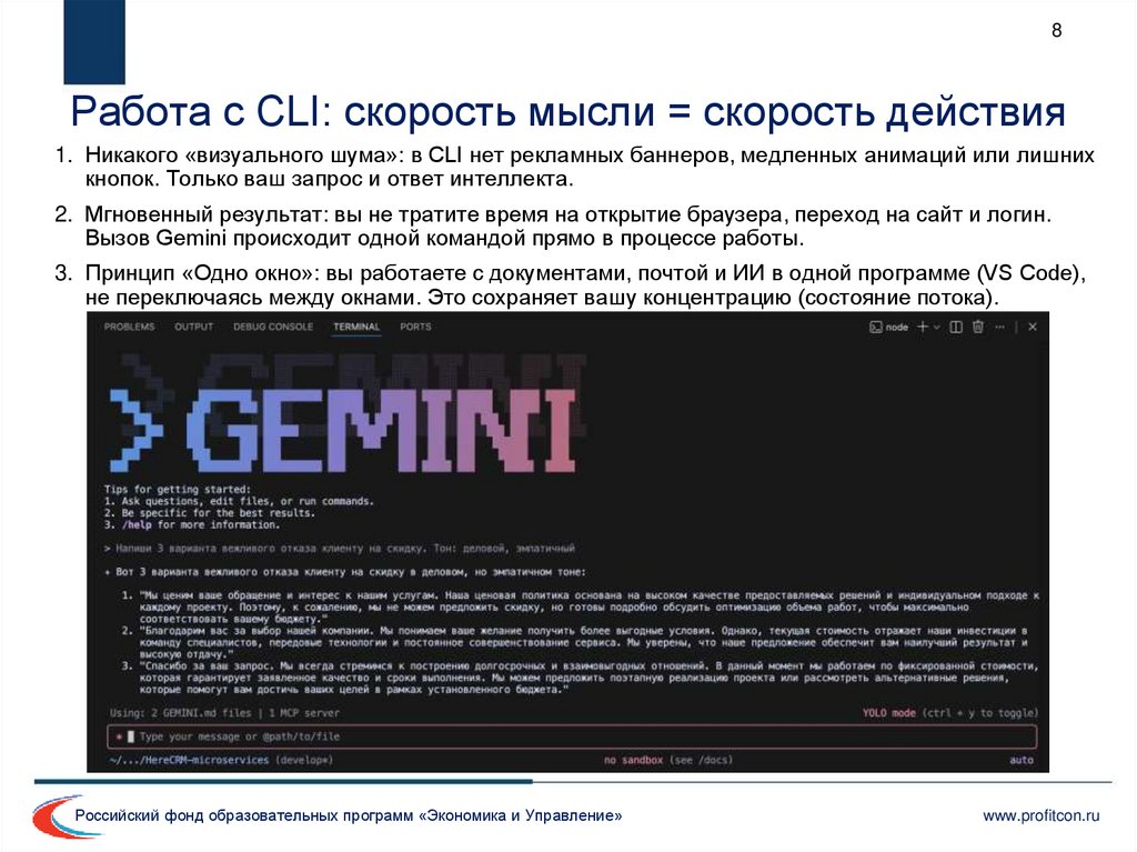 1. Никакого «визуального шума»: в CLI нет рекламных баннеров, медленных анимаций или лишних