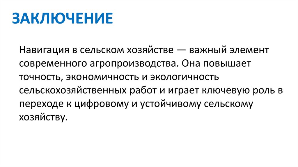 ЗАКЛЮЧЕНИЕНавигация в сельском хозяйстве — важный элемент