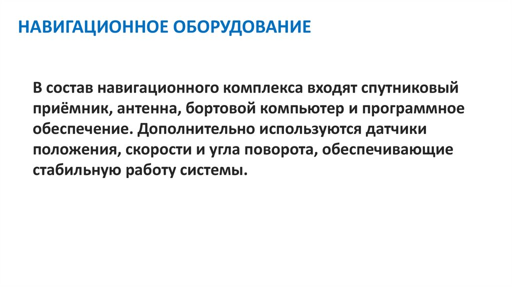 НАВИГАЦИОННОЕ ОБОРУДОВАНИЕВ состав навигационного комплекса входят спутниковый
