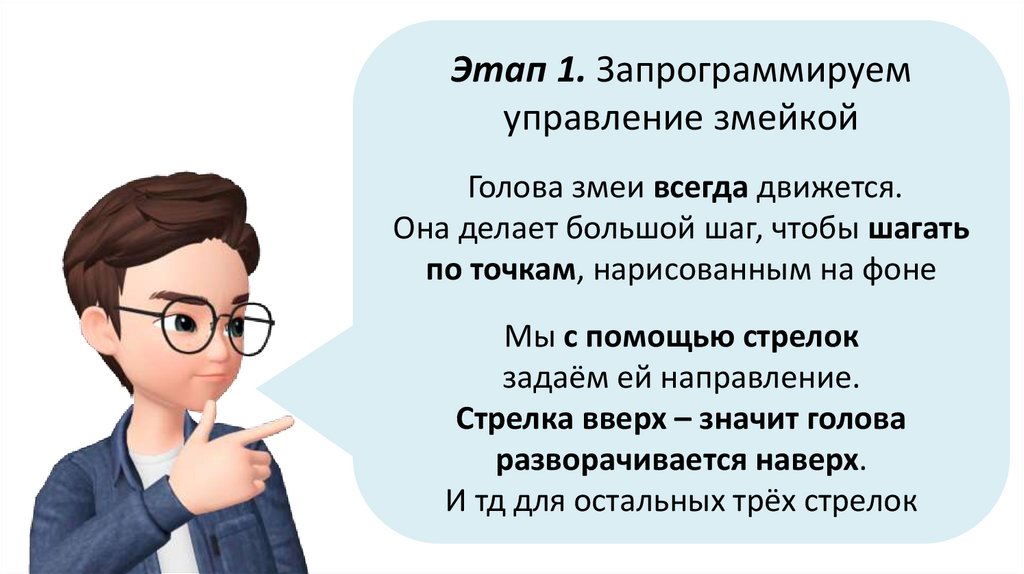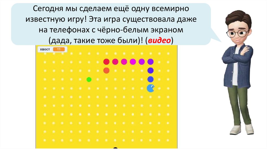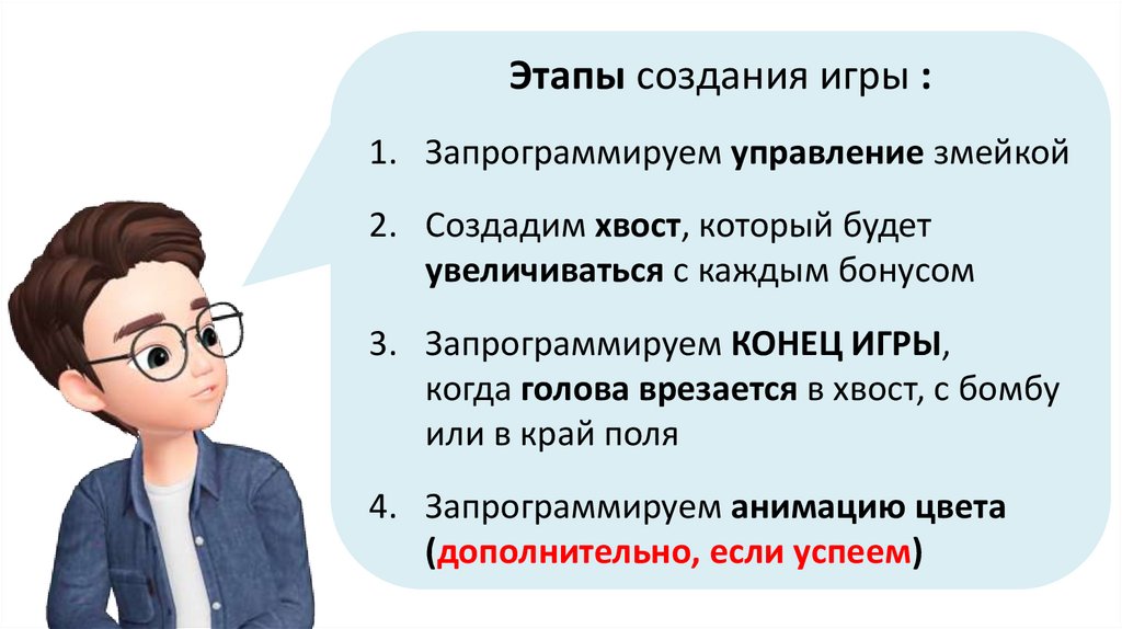Этапы создания игры :1. Запрограммируем управление змейкой