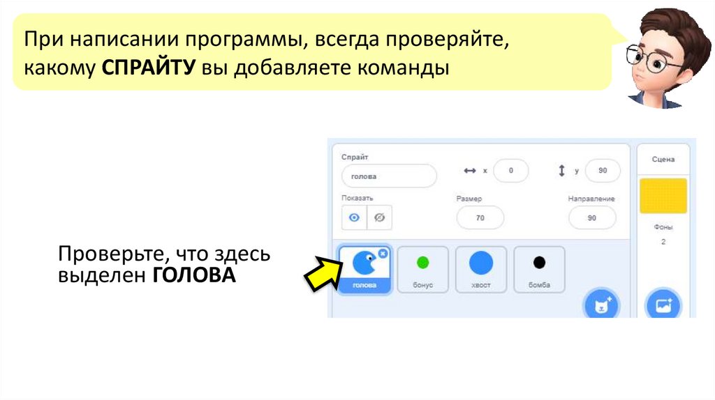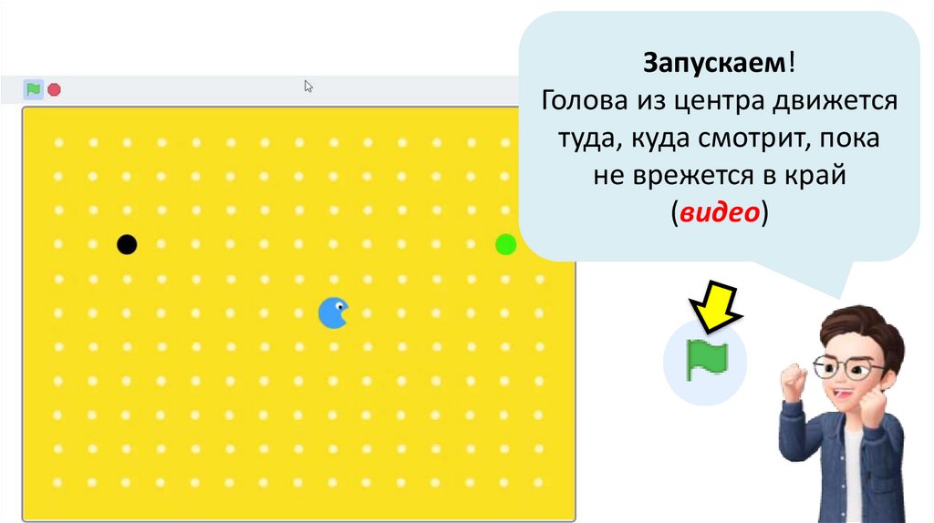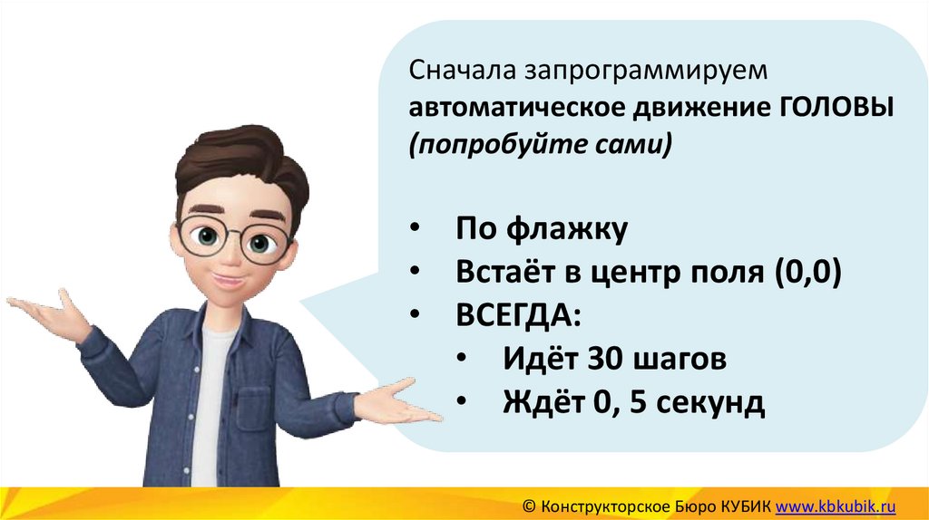 Сначала запрограммируемавтоматическое движение ГОЛОВЫ