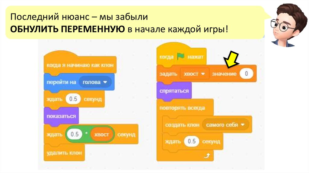 Последний нюанс – мы забылиОБНУЛИТЬ ПЕРЕМЕННУЮ в начале каждой игры!