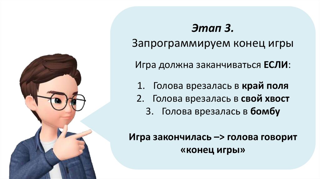 3. Запрограммируем КОНЕЦ ИГРЫ,